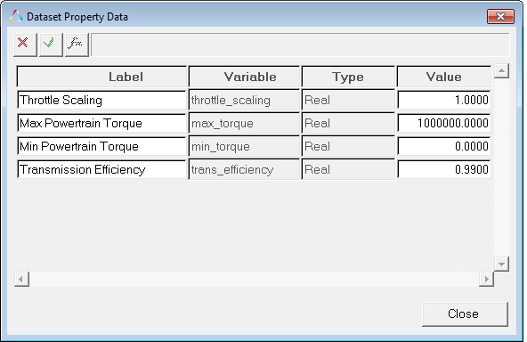 Min. Powertrain Torque 0.00 In model units. Toque output from the powertrain at 0% throttle.