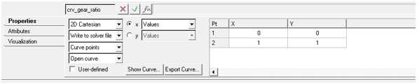- Gear Ratio Curve: Curve that contains the information about the gear ratio of the