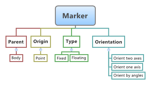 A marker is a coordinate system attached to a body that is used as a reference for other entities such as joints, forces, motions, and output requests.