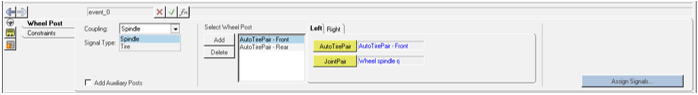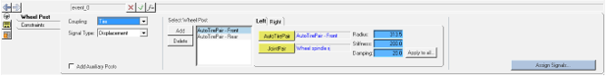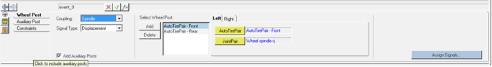 - Add Auxiliary Posts: If you need to add posts to excite non-wheel parts of the vehicle, for example the chassis, to simulate aerodynamic forces, this option can be checked to add a new tab called the Auxiliary Post.