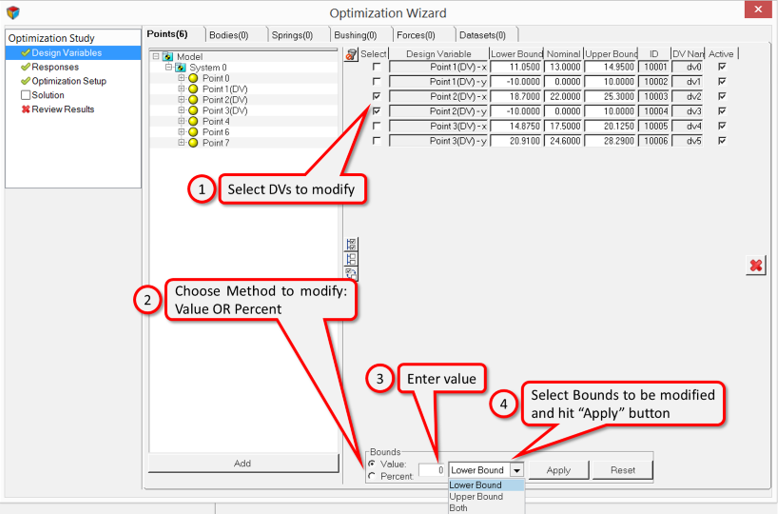 Figure 2.- The Value method will add/subtract the number entered from the nominal value to calculate the bounds. The Percent method will add/subtract the specified percentage of the nominal value to calculate the bounds.