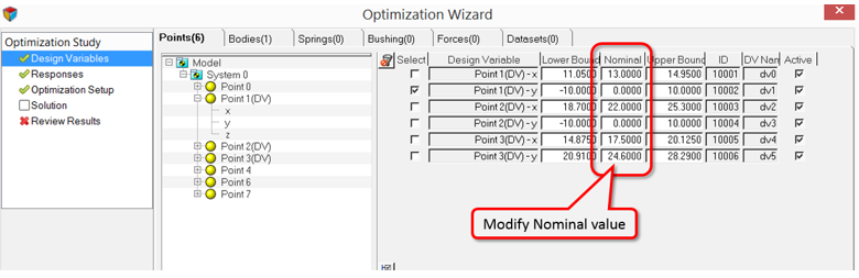 Figure 1.- Changes made to the nominal values using the Wizard will be reflected in the current MBS model.