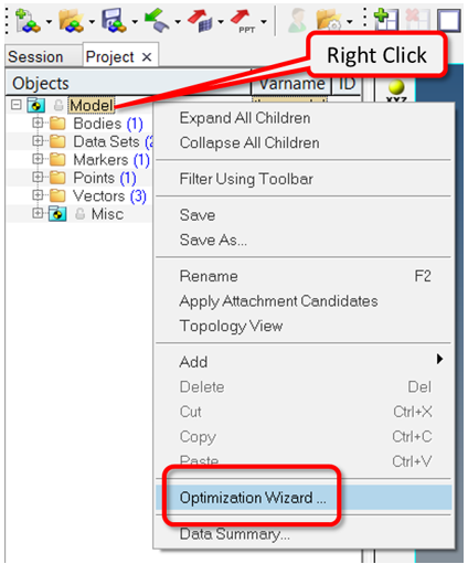- Right-clicking on Model in the Project Browser and choosing Optimization Wizard