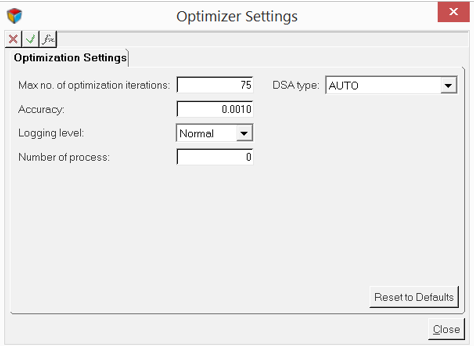 The Optimizer Settings dialog is displayed.