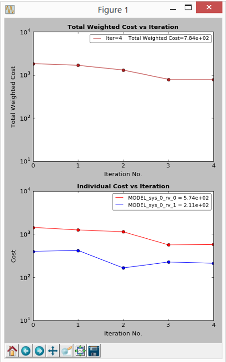 The value of the objective functions are plotted against the iteration number, while the optimizer is running.