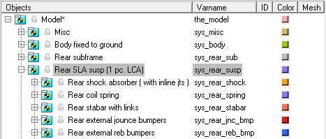 | LCA Rear Bush | Bushing | Lower Control Arm | Subframe, Vehicle Body or Ground | LCA Rear Bush | When the Compliant option is set to No, this bushing is deactivated. |