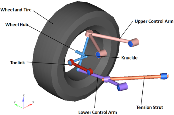 Figure 2. Rear-Half-Vehicle Model Employing a SLA Suspension with Two (2) Piece Lower Control Arm