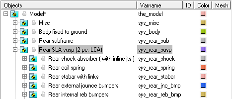 Figure 3. Browser View of a Rear-Half-Vehicle Model Systems and Subsystems Employing a SLA Suspension with Two (2) Piece Lower Control Arm