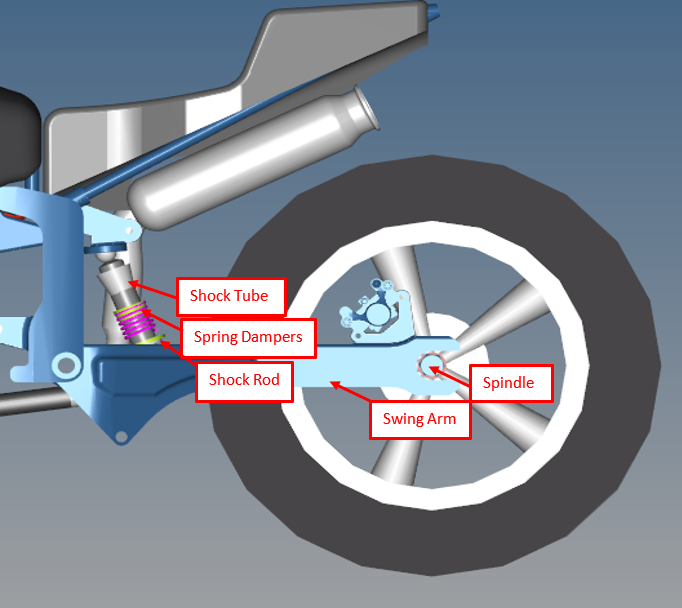 Rear Suspension systems support the rear wheel with the help of a swingarm and coil springs.