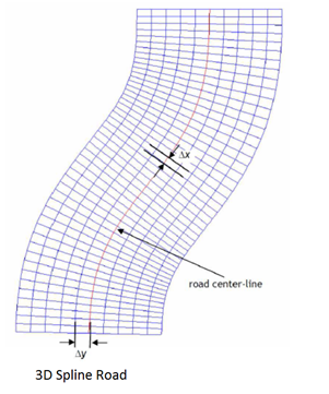 data files of type ‘3D Spline’. The road centerline, as defined in the RDF-file, is used as