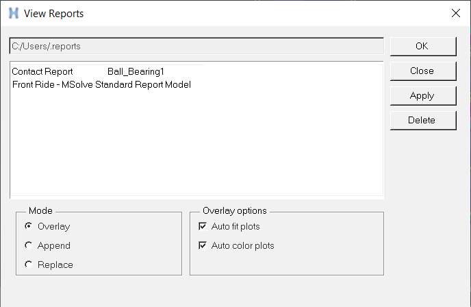 - The options in the report list dialog allow you to overlay a report on top of another or replace old reports with new ones.