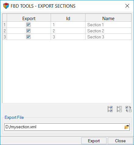 Once you have defined FBD sections in HyperView, you can invoke the Export dialog (shown below), where you