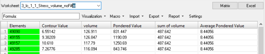 - areas: The pondered value will be the length for 1D elements, the area for 2D elements and the volume for 3D elements.