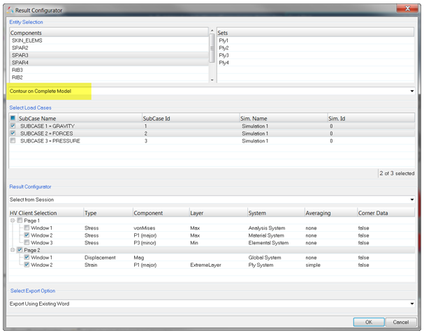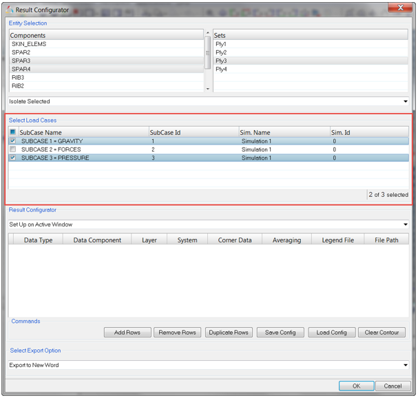 Select one or multiple load cases (each load case is structured as unique entity from the