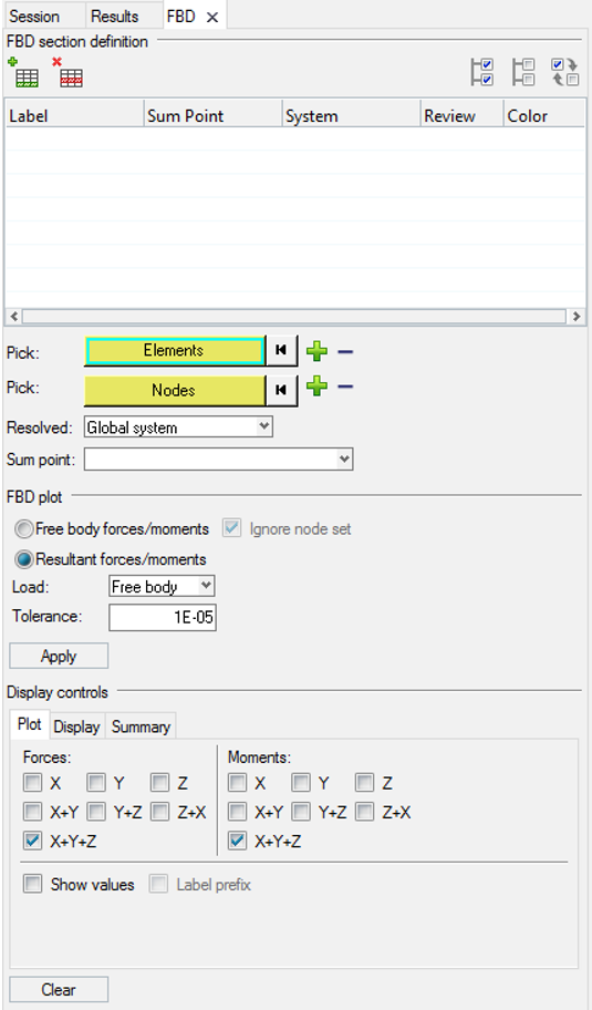 - Element based sections are defined and modified in this first step of the process. You can define multiple sections, associate elements, associate a node group (optional for resultant summation), or define other attributes (like a summation point, a coordinate system, etc.).