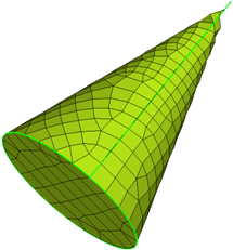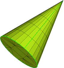 Figure 61. Cone with Surface Deviation Based Mesh. Many small elements are required to capture the geometry, even so, the elements exhibit a lot of warpage and those at the tip are distorted and do not accurately represent the geometry.