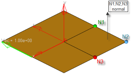 Define a vector either by selecting three points (N1, N2, N3), using one the global axes, or selecting an existing vector entity.