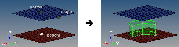 - Select the vector that defines the cylinder axis, thereby indicating the cylinder orientation. This does not indicate the actual cylinder height.