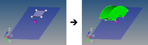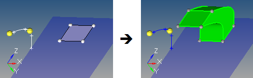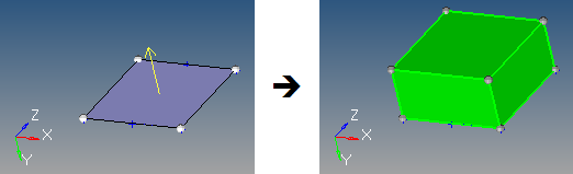 Figure 24. Drag Along Normal Example. The yellow arrow displays once the surface is selected, and indicates the surface normal.