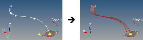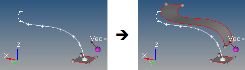 apparent when performing relatively complex drags.![]() Figure 21. . The highlighted line of the rectangular surface is dragged along the curved line, which curves in 3 dimensions.