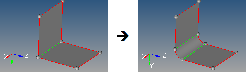 If an edge (or edge chain) is curved, HyperWorks can only fillet with a radius that is smaller than the radius of the edge curve, in order to avoid the fillet intersecting itself.