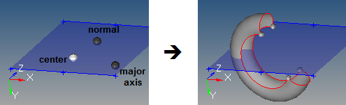 | major axis | Select the vector from the center node to the major axis node which completes the definition of the torus plane. Combined with the normal node, this provides the complete torus orientation. |