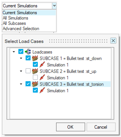 By default it uses Current Loadcase. You can change this by selecting options like All Simulations, All Subcases, or Advanced Selection.