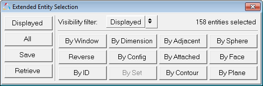 Figure 3. Extended Entity Selection -- By Window menu for the Elements entity typeUse Shift + left mouse button to define the window points. Select points in the modeling window to define a window enclosing the pick handles of the entities to select or exclude.- Select Entities inside the window to highlight the entities within the window.