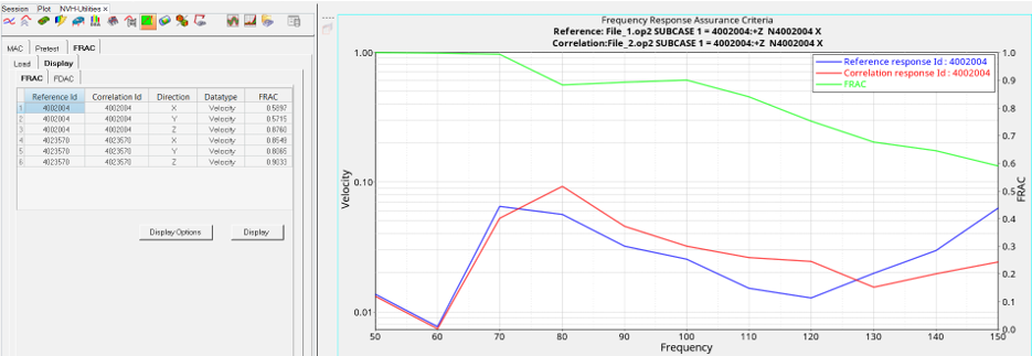 The FRAC utility’s Display tab allows you to filter FRAC results and select various plotting options using the FRAC and FDAC sub-tabs.
