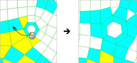 To use the collapse tool, right-click on the edge you wish to collapse. HyperWorks collapses the selected edge, as well as any edges that are associated with it.
