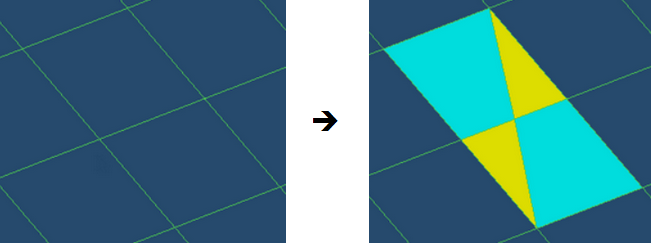 To split a quad element, left-click on the quad element you wish to split. HyperWorks splits the quad element into two tria elements.