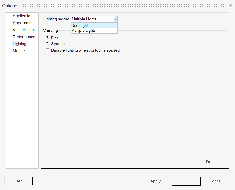 Disable lighting when contour is applied When contouring, specular highlighting and shading can be disabled by activating this option.