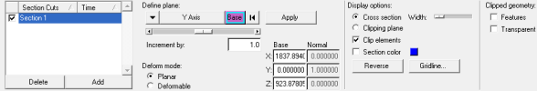 The section cuts defined for the current model are listed in the Section Cuts list, however spherical section cuts are not displayed in the list . You can add and delete section cuts in the list. Check boxes allow you to display one or more section cuts. You can also sort the items in the Section Cuts list by clicking on one of the list headings. In addition, keyboard shortcuts and a context menu are available for items within the list.