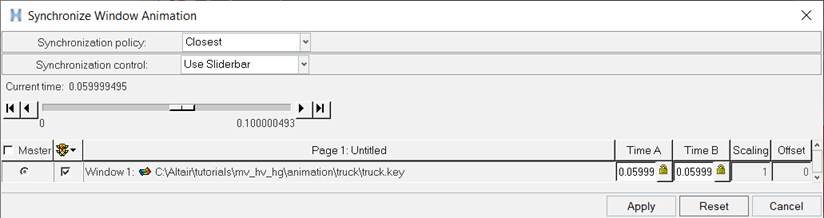 Use the Synchronize Animation dialog to synchronize windows that contain animation results in different units and/or begin at different time steps.