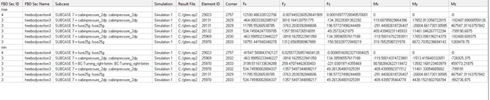 - Creates tables with forces and moments for one or multiple free-body sections and for one or multiple loadcases.