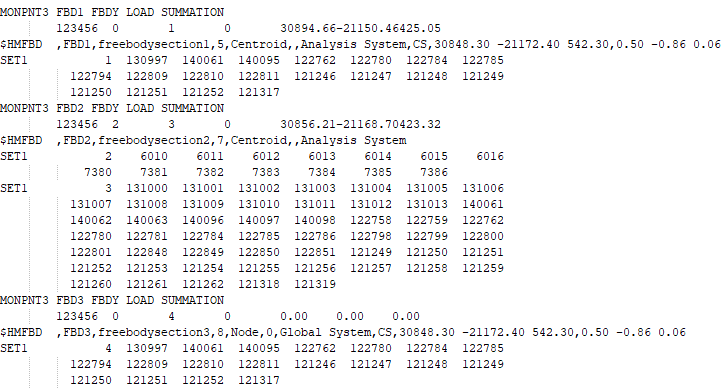 The FBD Forces tool can export one or more cross-sections using Nastran’s Monitor Point 3 Format (.bdf file).