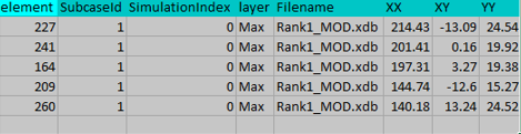 Figure 7. For each Element the Maximum XX Component and the Loadcase where it Occurs is Exported