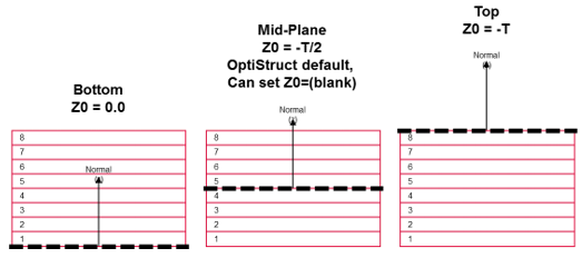 Properties for ply-based models are used as templates. The attributes of the property (offset, non-structural mass, etc.) assigned to component(s)/element(s) are used when final zone-based properties are generated by HyperMesh. If the solver is OptiStruct or Radioss, this definition is formalized – PLY and STACK (Laminate) cards define the layers at each zone and the property defines the additional solver-specific attributes.
