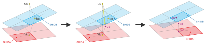 recenter GS Reposition the initial GS position between node GA and GB. After re-positioning, projections are done a second time to identify the correct node/element IDs.