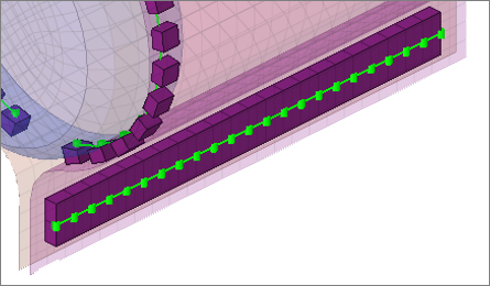 Creates hexa elements between shell and/or solid elements in order to connect them using a tie contact definition. The hexa element nodes will project and touch the shell and/or solid element faces. During the realization, a default tie contact and referencing main and secondary sets are created; unless defined differently, the hexas are assigned a default property and material, and are organized into a component with the same name base as the property.