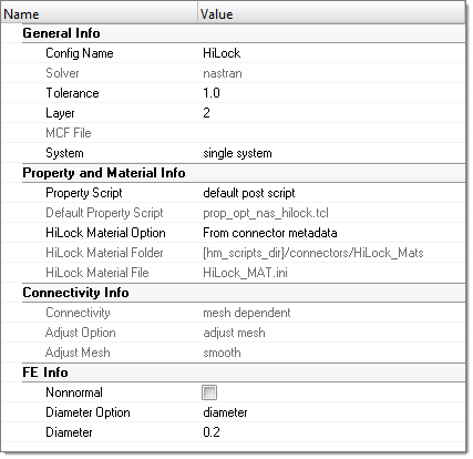 - This material will be assigned to the PBAR cards, and can be found in the following folder of the installation directory: [hm_scripts_dir]/connectors/HiLock_Mats.