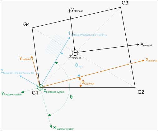 - The z-axis of the element system, the material system, and the fastener system should be collinear.