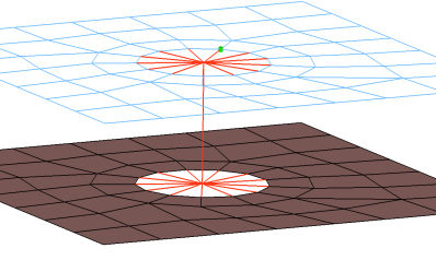 Creates RBE2 elements for the head and the body. The head elements project and connect to the nodes of the adjoining shell elements which form the hole. The connector location can either be on the edge of the hole, center of the hole, midpoint in between the two holes or on the second row of nodes which form the washer layer. The degrees of freedom are constrained in the x, y, z, rot x, rot z for the dependant nodes.