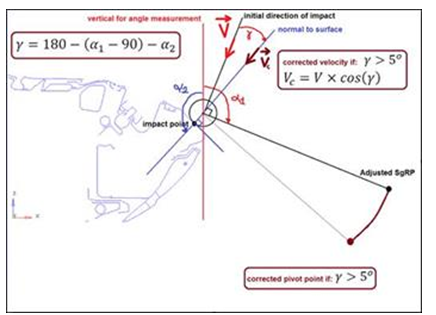 - Angle between the vertical axis, the pendulum arm set at the impact point, and adjusted SgRP.