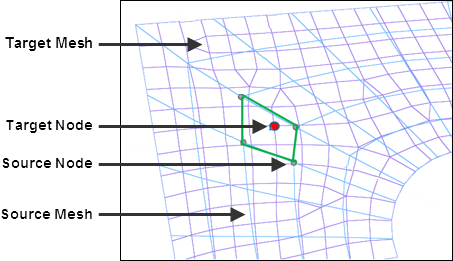 Source data contains the mesh and the nodal or elemental values. The target mesh is different from the source mesh.