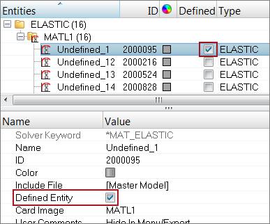 - If Defined is inactive, the entity not will be written to the solver deck.