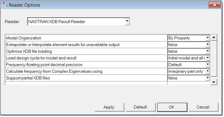 The Nastran XDB Results Reader can be customized by using