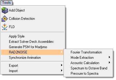From the Tools menu, select RAD2NOISE. A menu displays all of the solution options that the