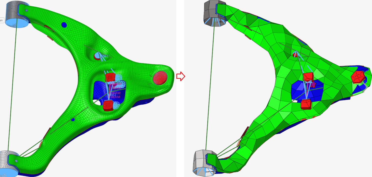 Simplify a mesh by combining many small elements into a smaller number of larger ones.