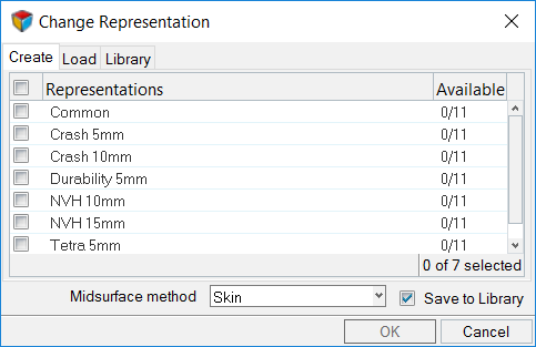 Common representations form the basis of all subsequent discipline specific mesh representations. When you select a discipline specific mesh representation from the Change Representation dialog, Create tab, the Common representation residing in the repository is automatically sent to the BatchMesher for processing. If the Common representation does not exist it will be automatically generated.